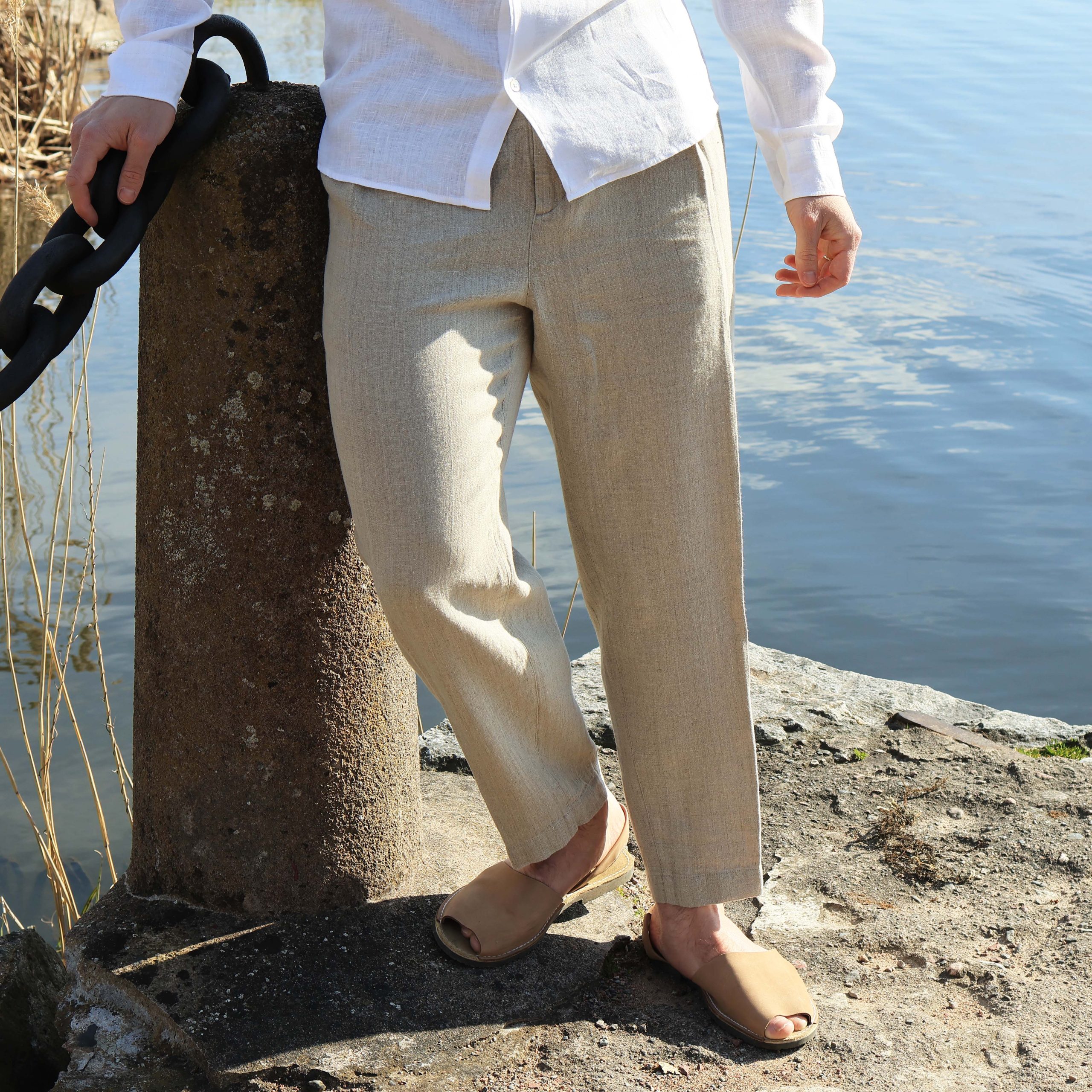 A pair of aesthetically pleasing and supremely comfortable linen trousers. Perfect for warm summer days, either basking in the sun at a café or when out exploring and looking for the lost civilisation of Atlantis. The Baltic Linen Trousers are longer than the Sacred Linen Trousers and have a slightly improved cut.