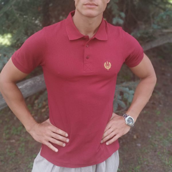 An aesthetically pleasing and comfortable burgundy polo shirt.