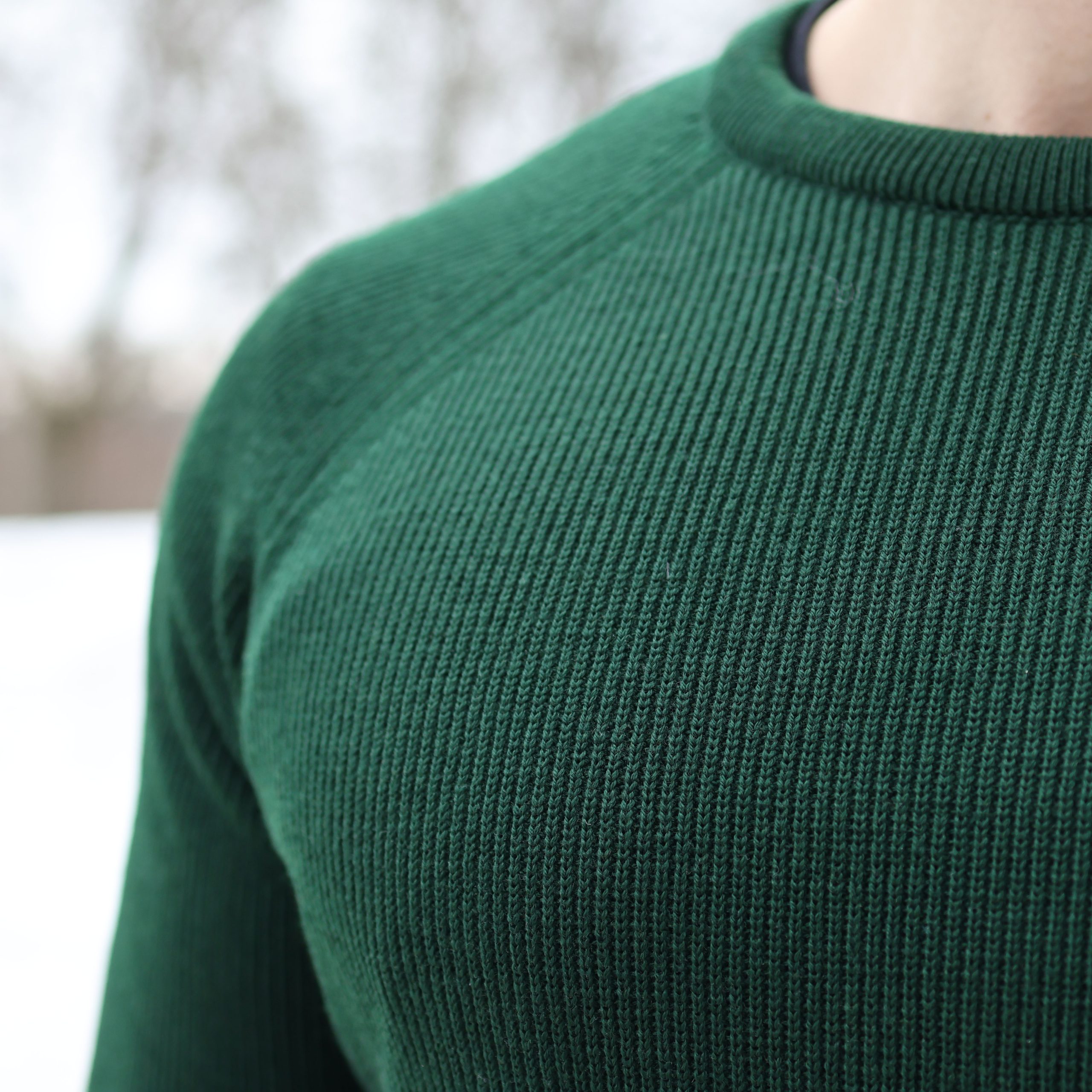 Love the green colour, and the woven pattern. Its a great simple but pleasing piece of work to look at. Warm and wooly, does not itch and fits great. bought L at 184cm 80kg and very happy with it.