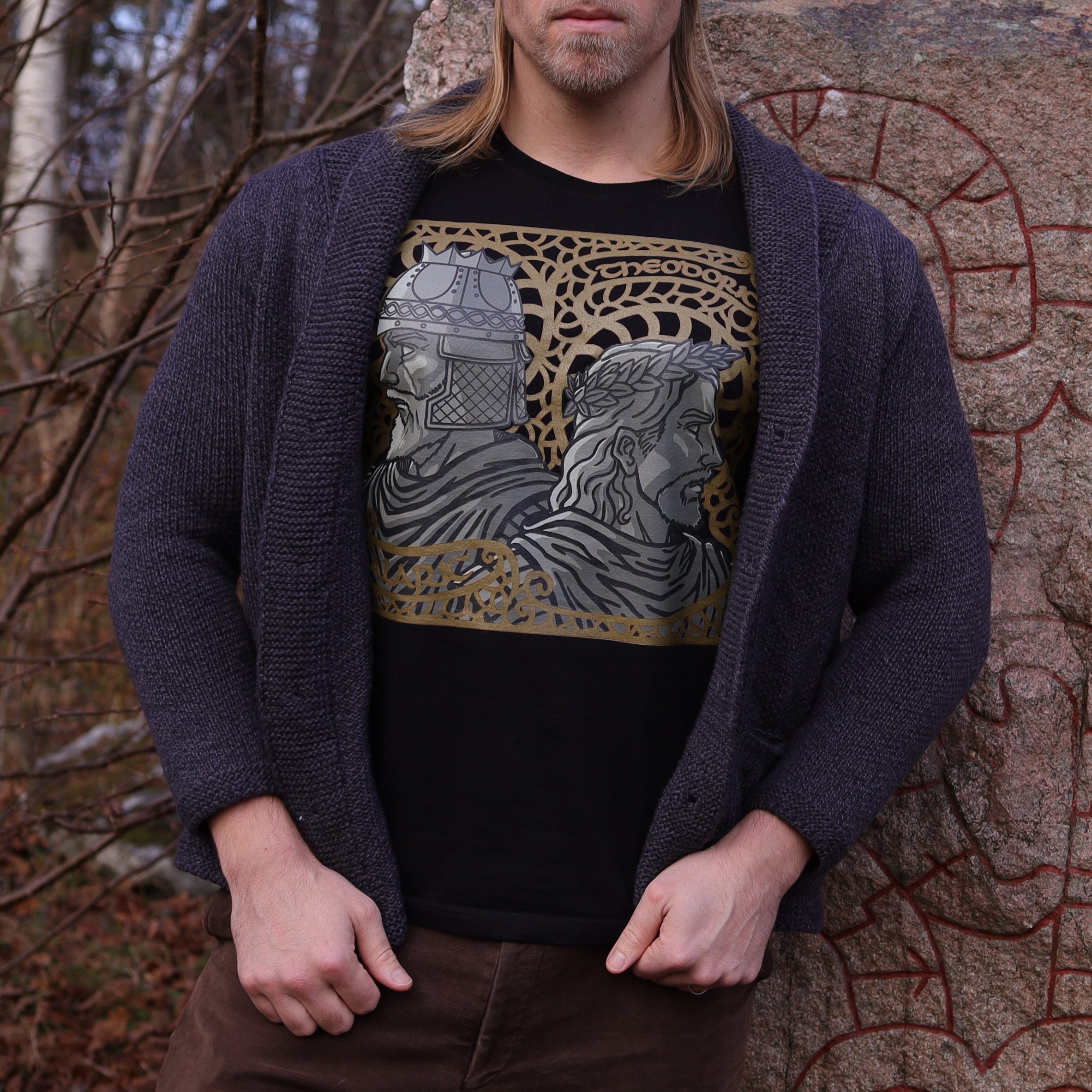 Alaric and Theodoric – the greatest Gothic kings, the Heirs of Rome, on proud display on the chest. Gothic eagles on the shoulders.