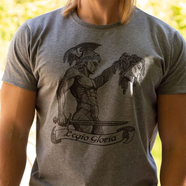 Perseus (you), defiant and victorious, holding the head of Medusa (your weaknesses) in triumph. This garment represents the timeless ideal of overcoming adversity in addition to honouring classical Europe. As with all Legio Gloria clothing, wear with a straight back and a confident gaze.