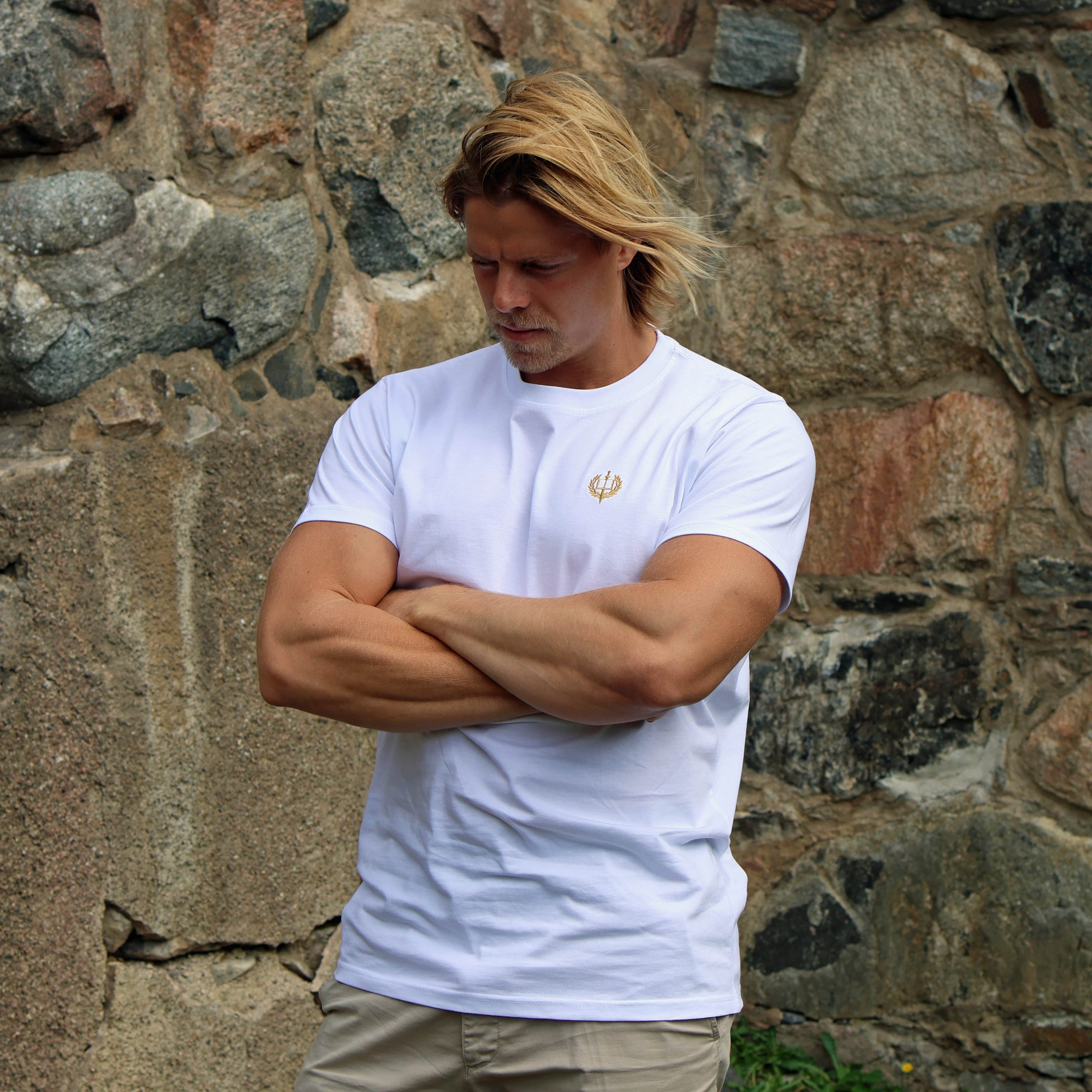 I had already bought the black shirt and was very happy with it. This shirt does not disappoint either. Same good quality and suitable for many different occasions. The gold logo and the white colour of the shirt fit very well together.
